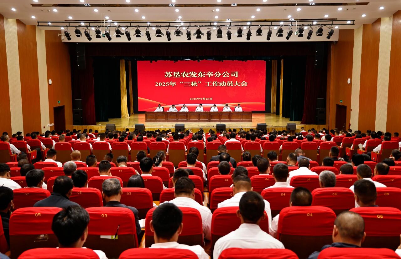 9月28日,苏垦农发东辛分公司在文化活动中心召开2025年“三秋”工作动员大会。东辛党委书记、董事长、苏垦农发东辛分公司总经理赵志讲话,党委副书记、总经理赵士利主持会议,党委委员、苏垦农发东辛分公司常务副总经理陈跃武作“三秋”工作动员报告。东辛场领导出席会议。